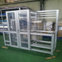 设备防护罩本案例工艺使用材料是铝型材4040D重型规格,侧过封板是钣金加工它的固定使用间隔连接块,顶部翻开门内部是使用气弹簧结构原理,欢迎来电咨询我根据客户尺寸和现场要求量身定制。
